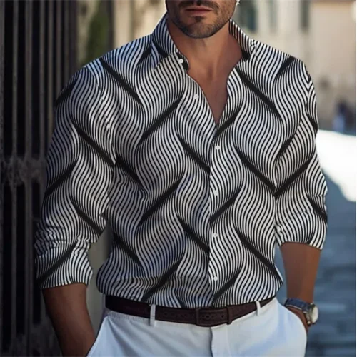 Office Business Shirt Long Sleeve 3d Line Striped Print Hawaiian Shirt Men Women Fashion Plus Size Blouse New Camisas Breathable