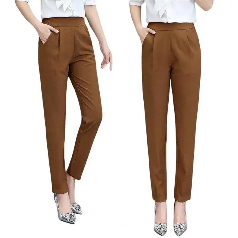 Woman Pants High Waist Elegant Commute Office Pants Thin Everyday Wear Solid Color Suit Pants For Travel