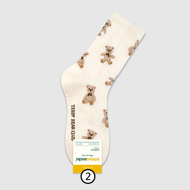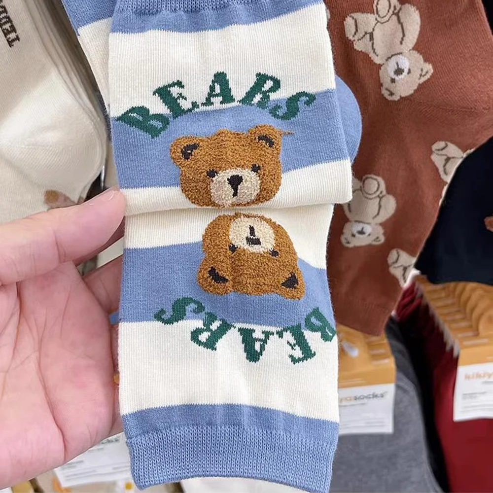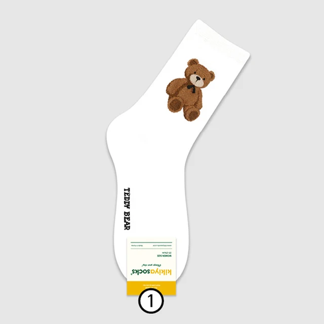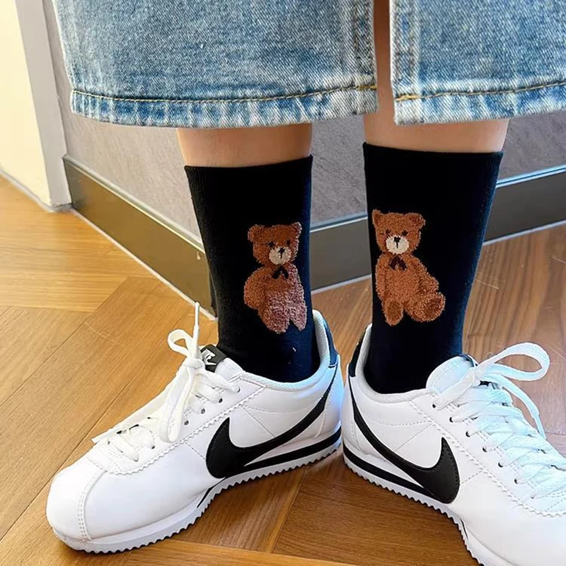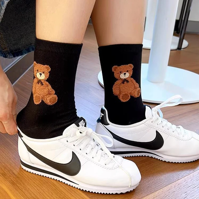 1 Pair Cartoon Bear Women Socks Cotton Harajuku Skateboard Girl Socks Novelty Breathable Sox Christmas Gift Factory Direct