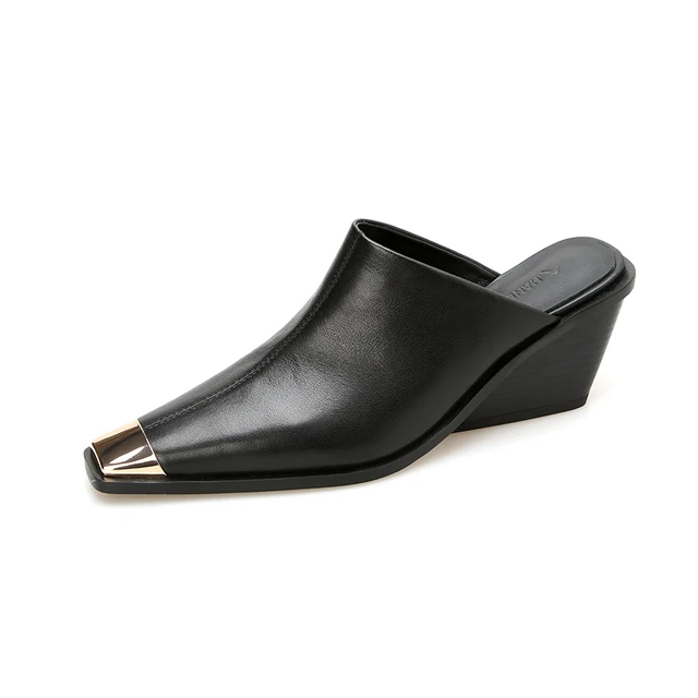 Dilalula 2025 Genuine Leather Mules Women Covered Metal Head Chunky Heels Comfortable Slippers Ladies Summer Casual Shoes Office