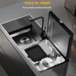 - Full accessories: Equipped with 11 luxury accessories, it offers you more cooking options than any other mini oven. Accessories include: 3 roasting racks (1 large and 2 small), 3 baking trays (1 large and 2 small), 3 rotating roasting baskets (1 large and 2 small), a fine mesh grilling basket, a divider, and a deluxe kitchen set.