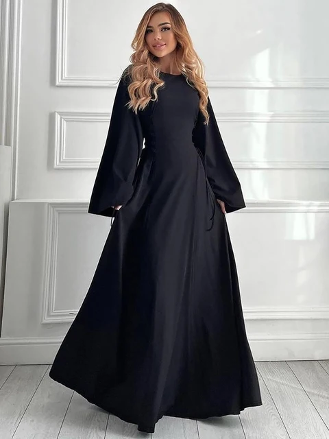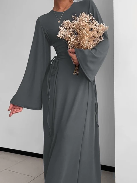 Be the first to review “Dulzura Ribbed Long Bell Sleeves Lace Up Slim Maxi Dress Solid Elegant Casual Long Dress Women’S Party Club Streetwear Autumn” Cancelar respuesta