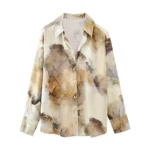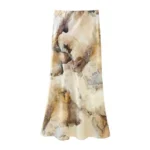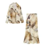 DUOPERI 2024 Women Fashion Tie Dye Printed Satin Blouse Midi Skirt Sets Chic Lady Casual Blouse and Skirt Coordinates