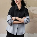 Fashionable Korean Style Slimming and Versatile Contrasting Mesh Stitching Fake Two-piece Shirt for Women