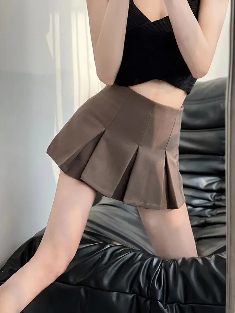 Pleated Skirt Shorts for Women High Waist Mini Shorts Women Summer Vintage Basic Solid Skirt Holiday Casual Shorts Ladies