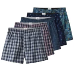 S-XL Mens Cotton Underwear Boxer Shorts Casual Plaid Elastic Waistband Button Mens Boxer Underwear Comfortable Shorts for Home