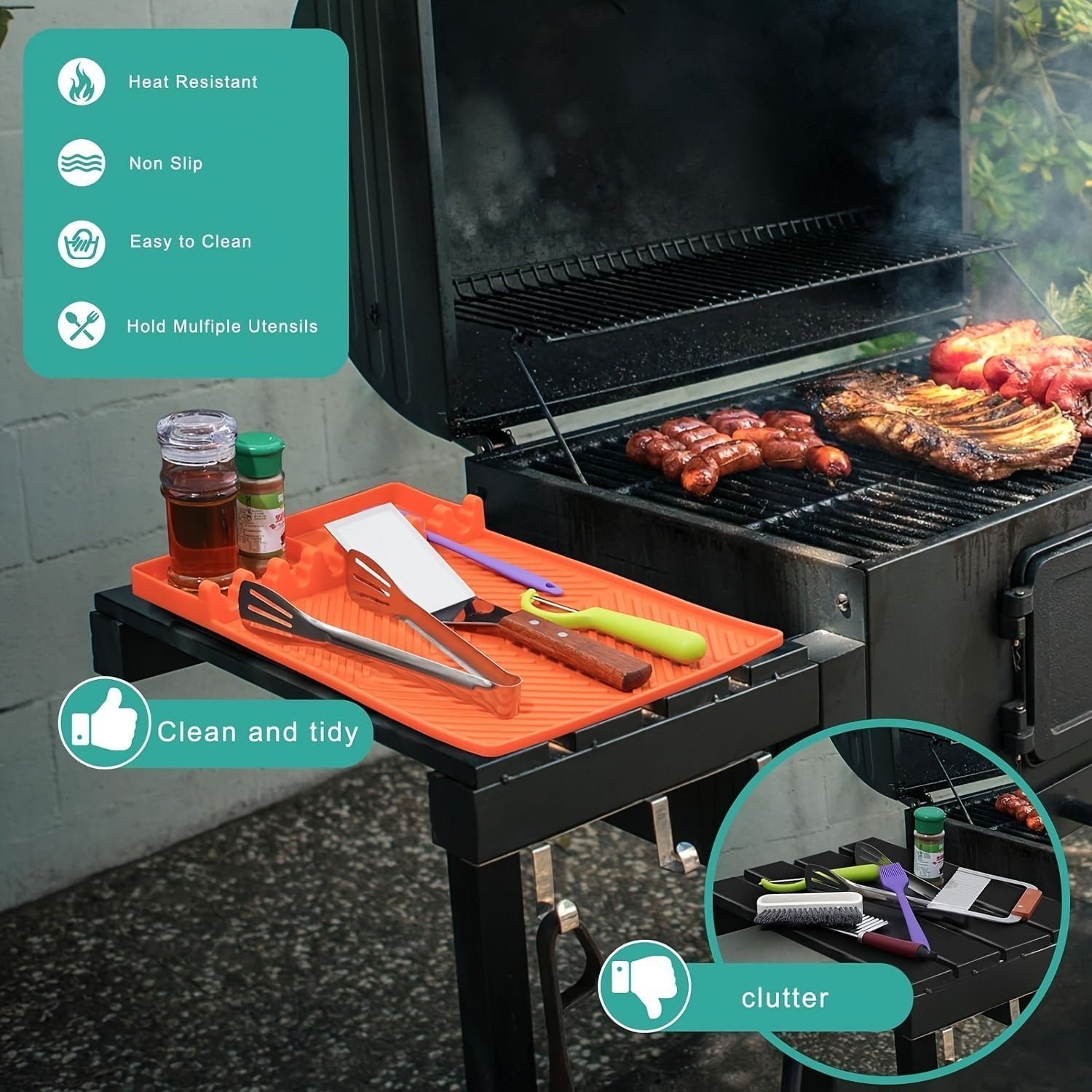 Silicone Grill Mat with Spatula Mat BBQ Caddy