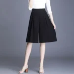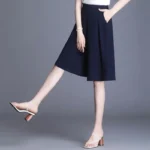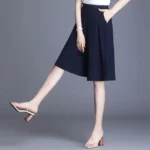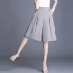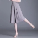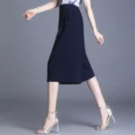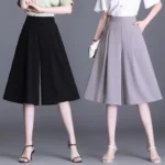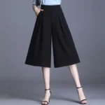 Summer New Fashion Casual Loose Chiffon Wide Leg Capris Women’s Solid Elastic High Waist Pockets Thin Breathable Straight Pants