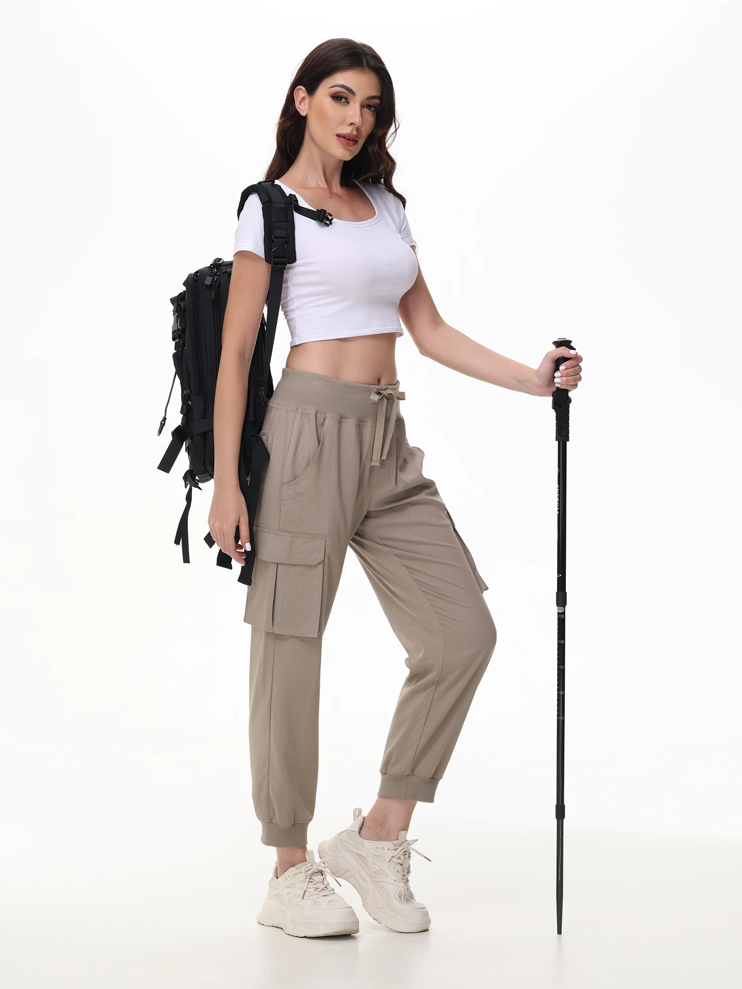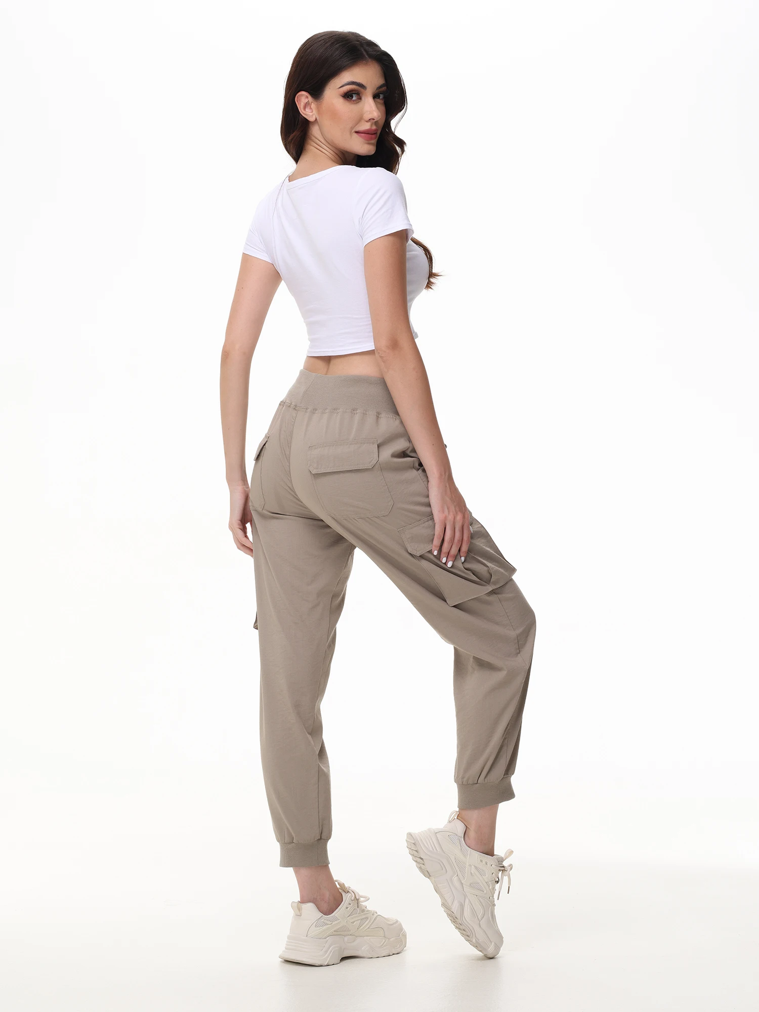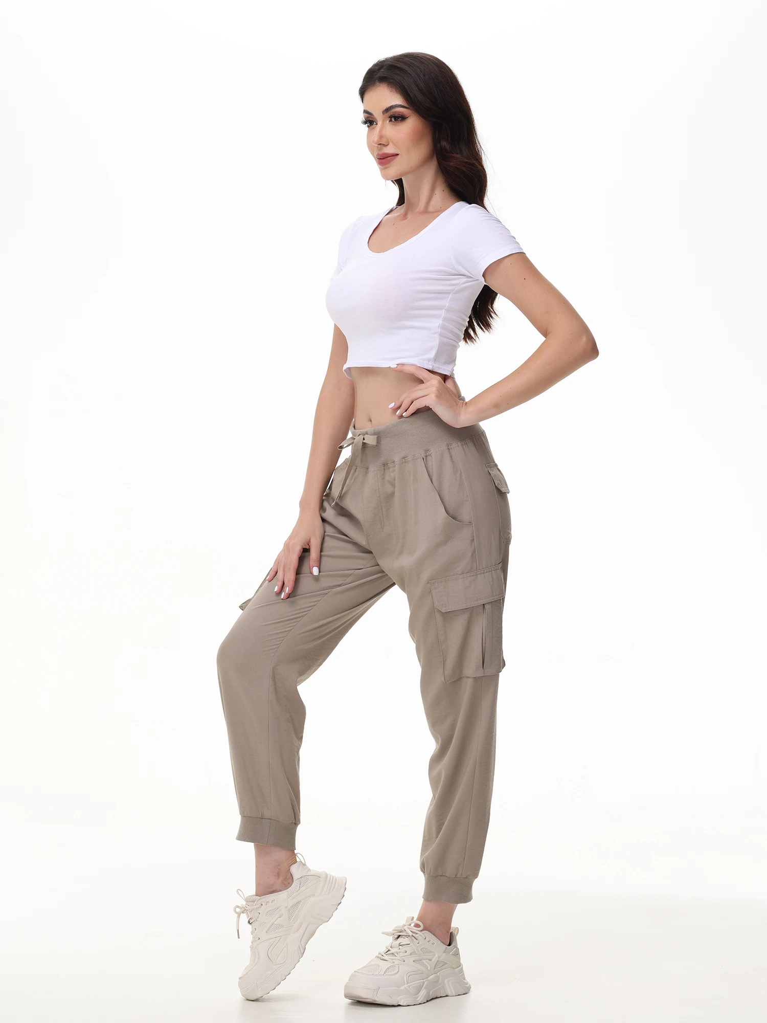 Summer Women’s Cropped Jogger Pants, Lightweight & Breathable Casual Yoga Pants, Quality Elastic Cargo Jogging Pants 6 Pockets