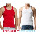 2 PCS/Lot Tank Top Men Solid Vest Cotton Male Breathable Sleeveless Tops Slim Casual Undershirt Black Mens Tank Tops 2-pack