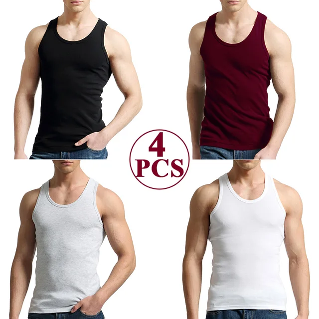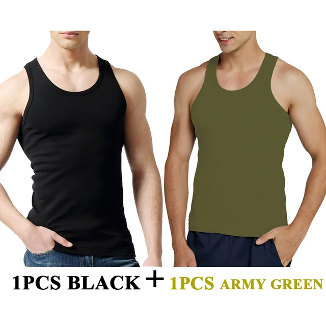 2 PCS/Lot Tank Top Men Solid Vest Cotton Male Breathable Sleeveless Tops Slim Casual Undershirt Black Mens Tank Tops 2-pack