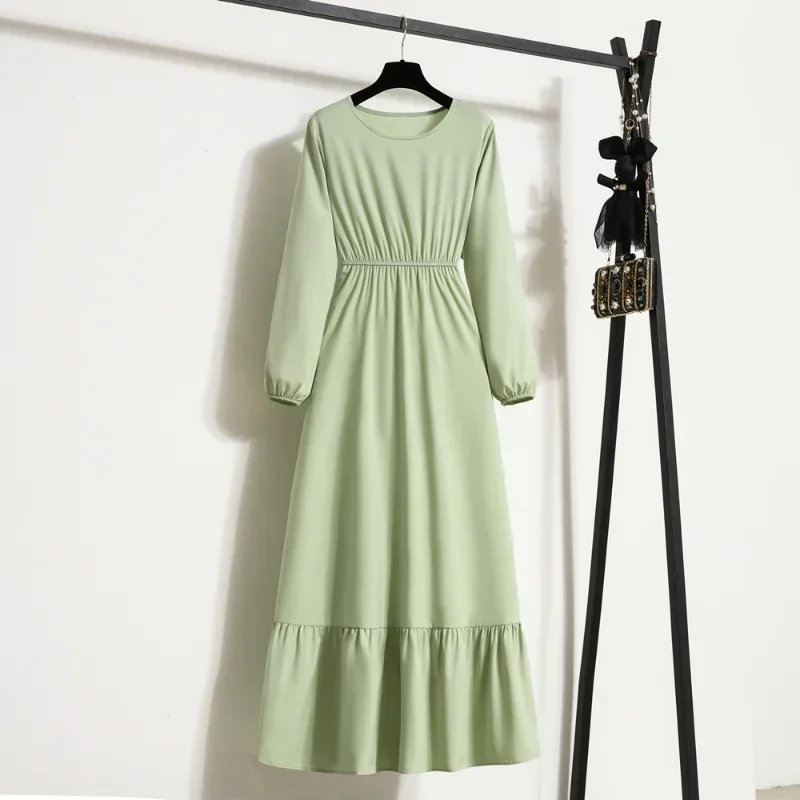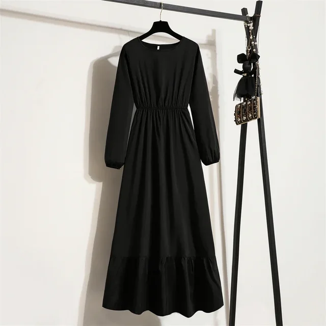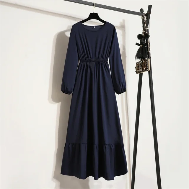 Women Long Dress Spring Autumn Mujer Vestidos Solid Full Sleeve O-neck Casual Chiffon Dresses Muslim Solid Loose Maxi Dresses
