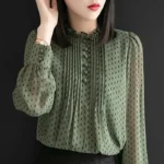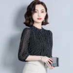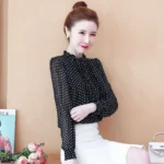 Women Spring Autumn Style Chiffon Blouses Shirts Lady Casual Long Sleeve O-Neck Polka Dot Printed Chiffon Blusas Tops DD8879