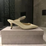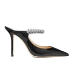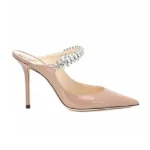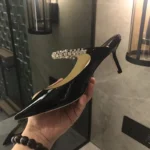 Women’s Summer Sandals Pointed Toe Mules Rhinestone Patent Leather Pump With Stiletto Pumps Semi-Slip Toe Half Drag Flat